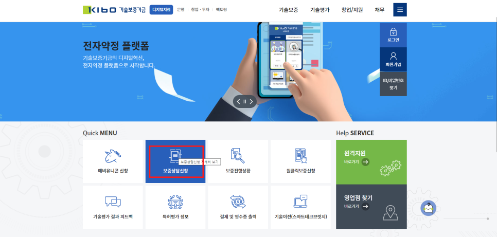 기술보증기금(기보) 비대면 보증 상담 신청 방법