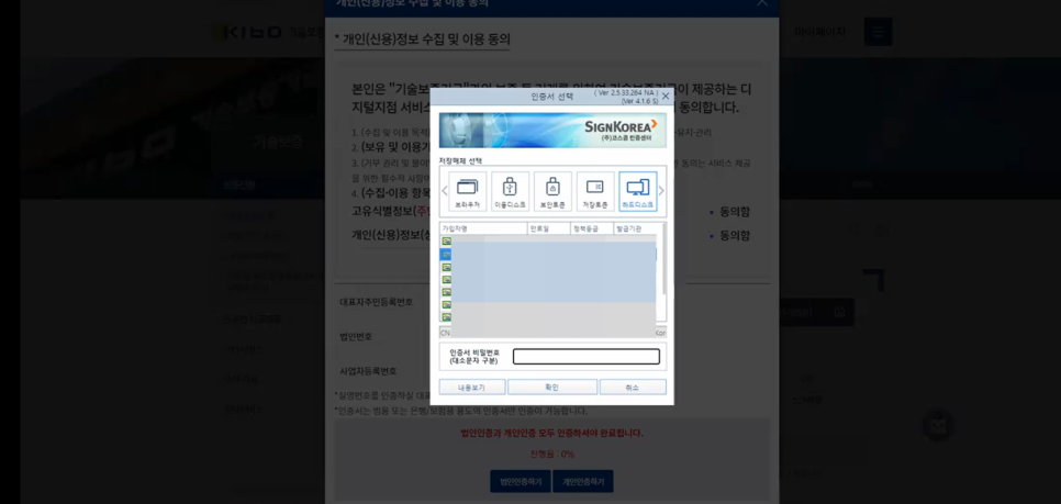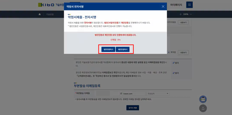 (법인인증하기)/(개인인증하기)