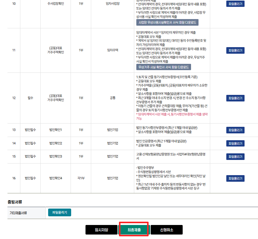 - 법인추가서류: 법인등기부등본, 인감증명서, 주주명부 등